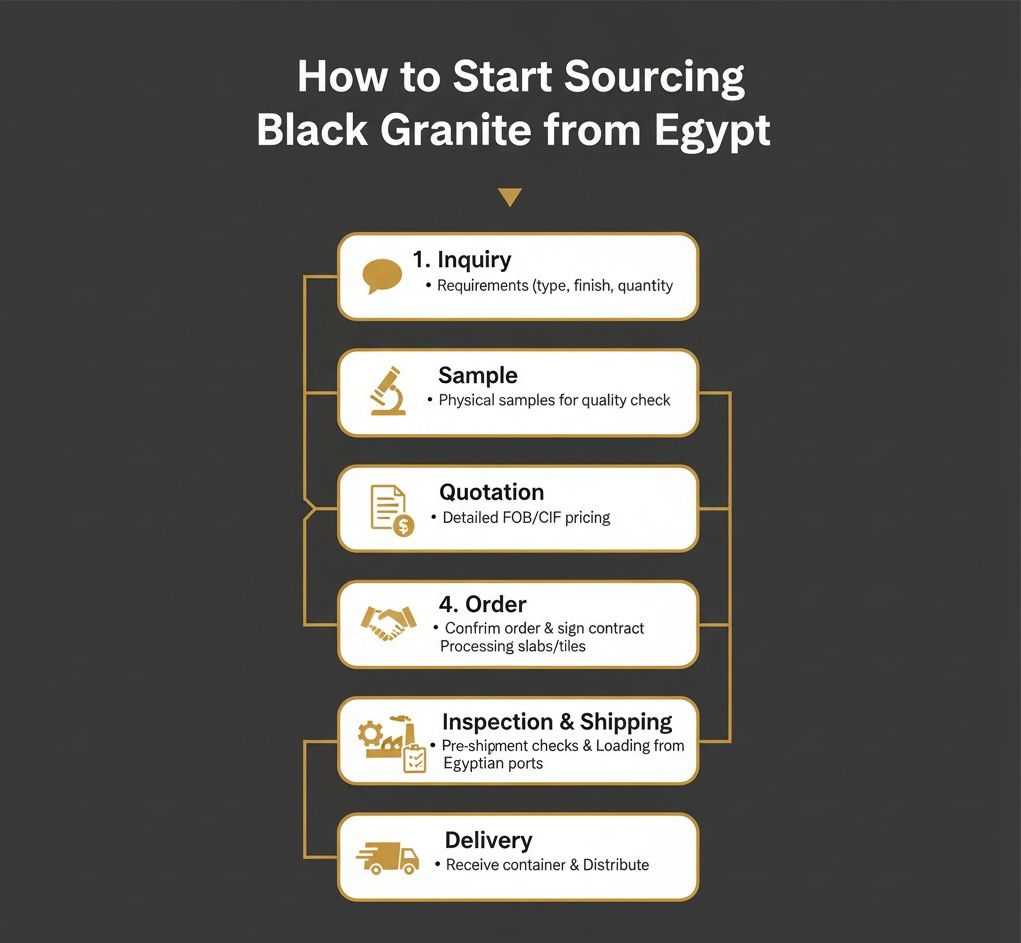 If you are ready to explore black granite as a product for your market, here’s a simple process you can follow: