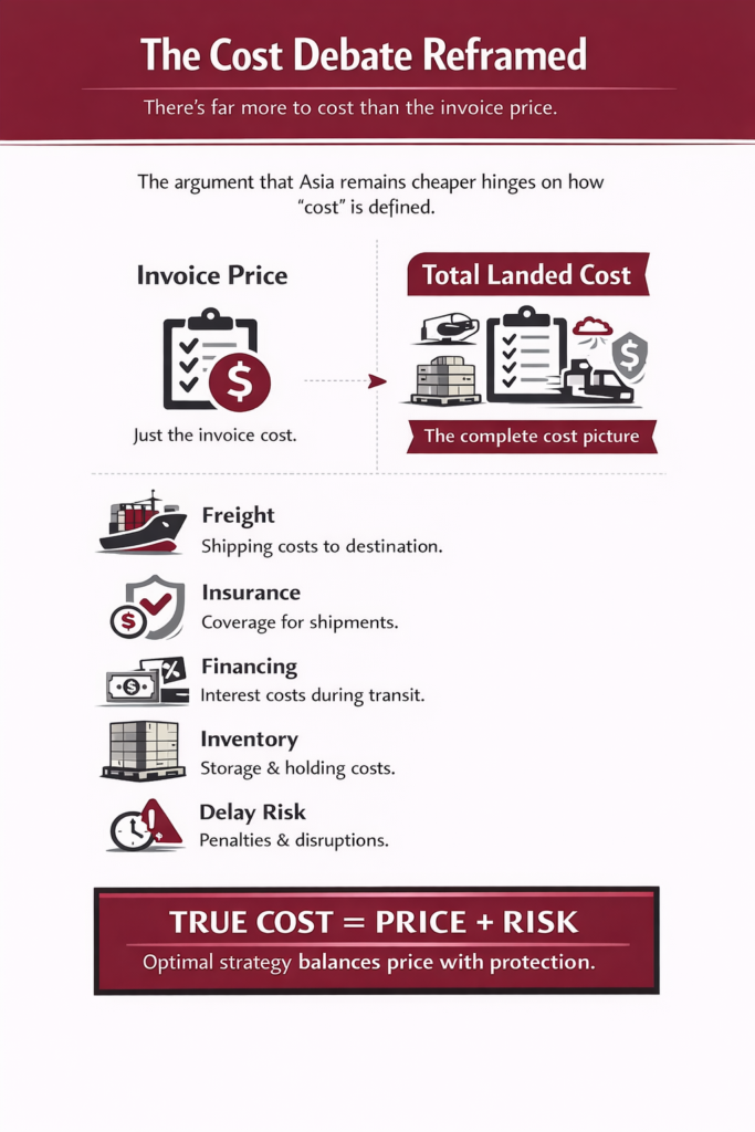 The argument that Asia remains cheaper depends entirely on how “cost” is defined.