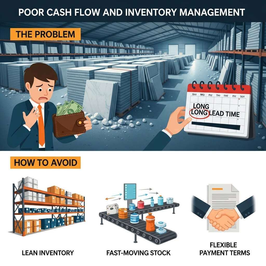 Marble and granite are heavy, high-value products that require significant upfront investment. Many traders overcommit financially by:
